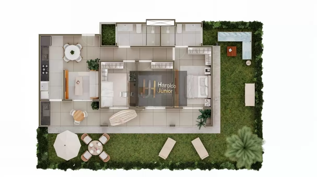 Acabamento premium: Porcelanato em todo o apartamento.