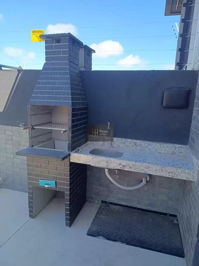 com churrasqueira e bancada de apoio.
